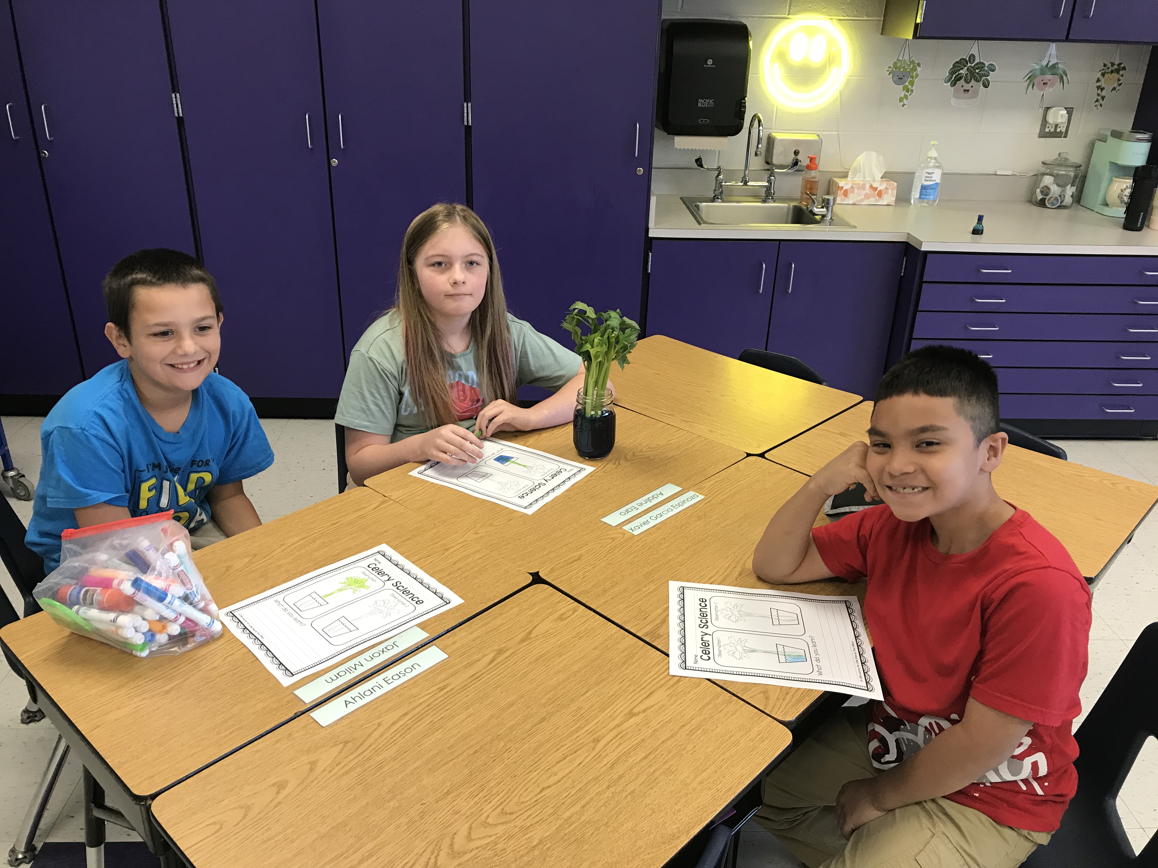 This month, our 3rd graders have been learning about the different parts of a plant and their functions. To see this in action, students completed a science experiment using celery placed in colored water. Over time, they were able to observe how the water traveled up through the stem, showing how plants move water from their roots to their leaves and flowers.